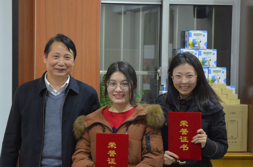 江荣风教授为汇报一等奖杨燕玲、王晓奕颁奖