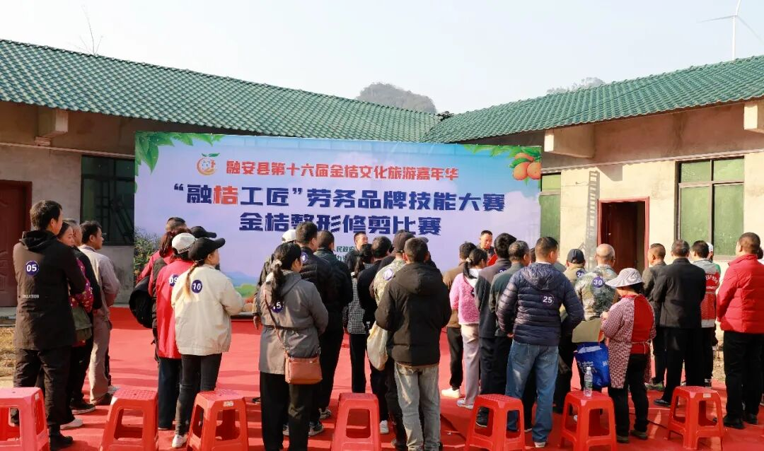 在桂北大地的冬日暖阳中,广西省柳州市融安县浮石镇六寮村的脆蜜金桔基地里,修剪能手们以剪为笔、以树为卷,精准塑形修枝;桂北农产品电商园内,金桔包装从业者指尖翻飞,快速完成分拣、装箱、密封的标准化操作——这是融安县第十六届金桔文化旅游嘉年华系列活动之“融桔工匠”劳务品牌技能大赛的生动场景。作为科普类社会组织的中坚力量,融安县农村专业技术协会(以下简称“融安县农技协”)始终以“培育、选拔乡土人才”为抓手,深耕地方特色产业,在乡村振兴的道路上书写着社会组织的责任与担当。
