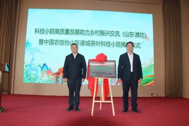 仪式上,陈爱国为科技小院揭牌。据了解,中国农技协山东诸城茶叶科技小院是潍坊市首家茶叶专项科技小院,也是今年潍坊市获批的第一个科技小院。它的成立填补了当地茶产业专业化科技赋能平台的空白,将为茶产业提质增效、茶农增收注入强劲动力。