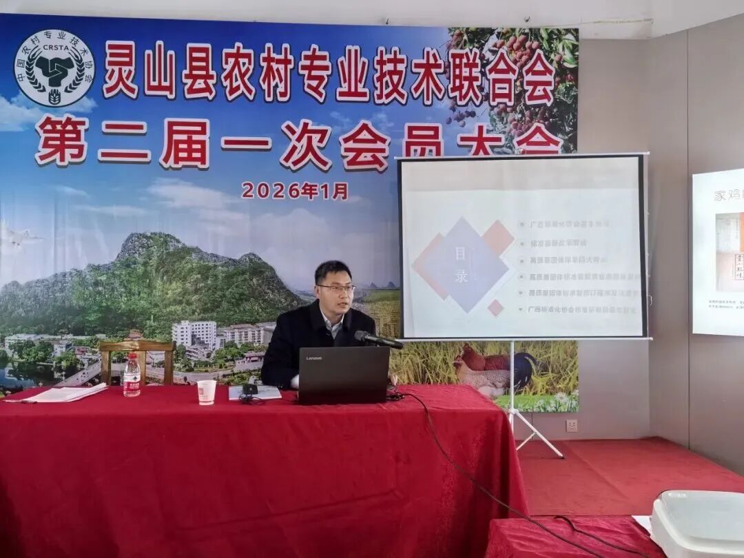 1月15日,广西灵山县农技联合会第二届一次会员大会暨标准化科普培训班在灵山县香鸡文化园召开。广西农技协理事长钟会超,钦州市科协党组成员、副主席林青山出席活动并讲话。钦州市科协、灵山县科协相关负责人,灵山县农技联合会会员代表及嘉宾等近70人参会。