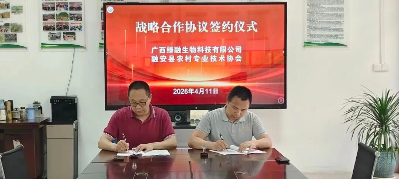 4月11日,融安县农技协与广西绿融生物科技有限公司签订战略合作框架协议,聚焦新型肥料技术转化与示范推广,开启协企协同助力绿色农业高质量发展的新篇章。
