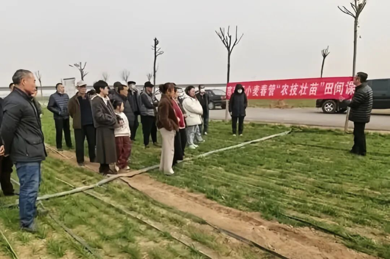 徐召智结合小麦生长实际,围绕田间管理关键要点,用通俗语言和田间案例展开讲解,针对晚播、弱苗偏多的情况,指导农户按苗情分类施策,实现弱苗促壮、壮苗稳长、旺长控旺,杜绝“一刀切”管理。他还在现场架起手机直播,将课堂搬上“云端”,从选种育种、田间管理到病虫害识别、粮食储存,细致讲解演示,让更多农户同步学习春管技术。