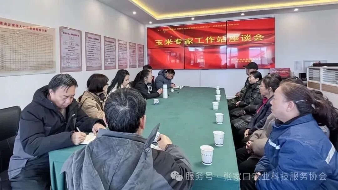活动期间,张家口市农村致富带头人行业协会党委书记、桥东区元子河村党支部书记郭建仁、张家口农业科技服务协会秘书长陈广维一行三人、河北省玉米产业技术体系寒旱区抗逆丰产岗位专家黄智鸿研究员一行三人共同出席了“玉米专家工作站座谈会”,聚焦膜下滴灌水肥一体化模式下玉米单产提升路径,面向当地种植主体开展专题培训。培训内容紧密结合当前农业生产实际,围绕品种优选、播量确定、播期调控、追肥策略以及适期收获等关键技术环节进行系统讲解,推动良种良法配套落地。