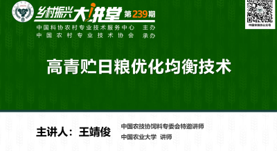 【乡村振兴大讲堂】第二百三十九期 | 高青贮日粮优化均衡技术