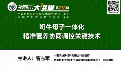 【乡村振兴大讲堂】第二百三十八期 | 奶牛母子精准营养协同调控关键技术