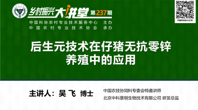 【乡村振兴大讲堂】第二百三十七期 | 后生元技术在仔猪无抗零锌养殖中的应用