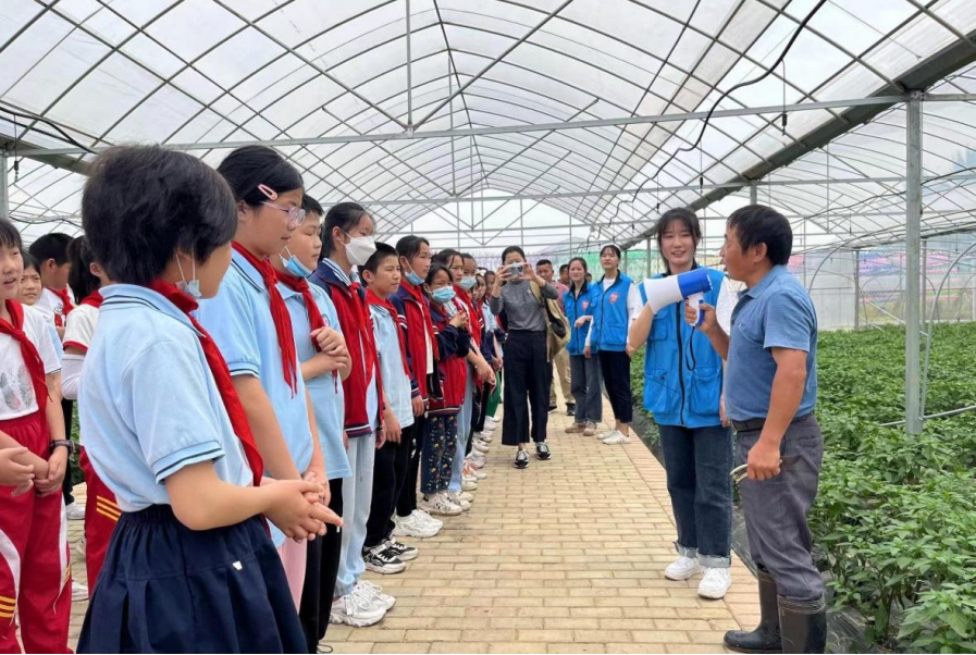 2023年以来,累计已有2万余人次中小学生在此开展研学实践, 课程由退役军人和科技小院驻院的研究生担任辅导老师,将“科技强军”与“科技兴农”理念深度融合,让课堂真正设在田间地头。