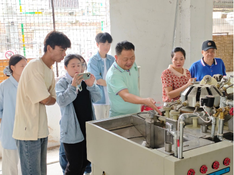 团队在郁南县的云浮市桂和茧丝绸有限公司,实地考察了蚕茧收储、蚕茧分拣、缫丝加工、蚕蛹分选及蚕丝绵等副产品综合开发等全产业链的生产流程,从蚕桑全产业的延链、补链、强链等关键环节寻找技术的增长点,为科技小院聚焦全产业链,提升新质生产力开展科研攻关明确方向与重点。