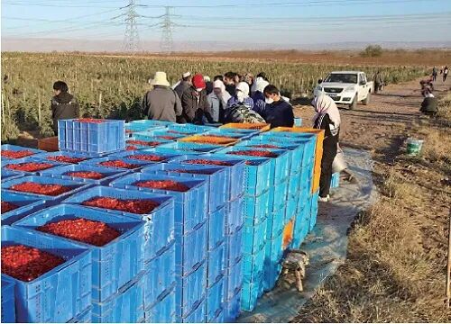 收获时节,徐兴业掌管的有机种植基地里,枸杞装箱待运。 徐兴业供图