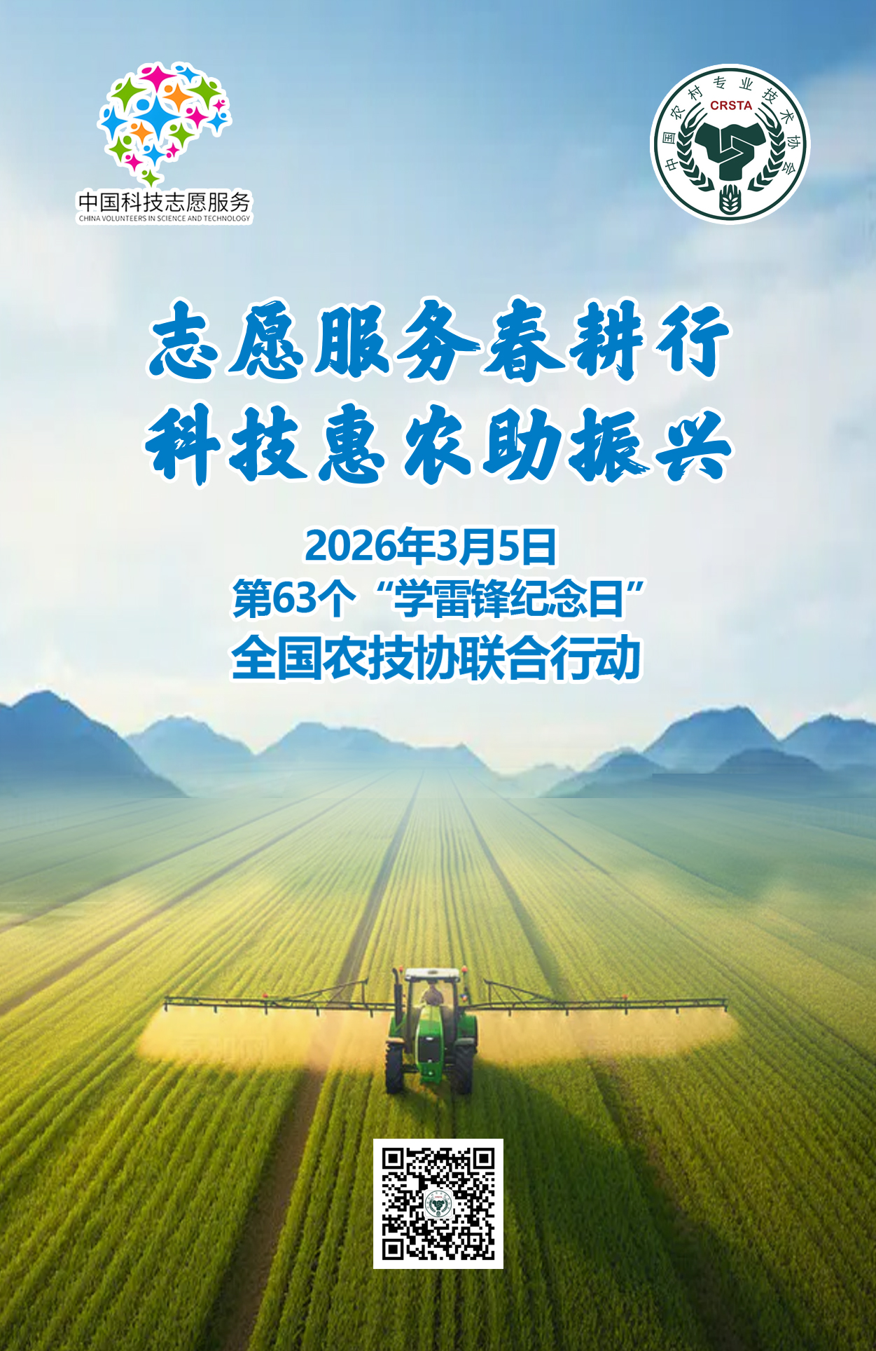 为深入贯彻落实《关于在全党开展树立和践行正确政绩观学习教育的通知》精神,在2026年第63个“学雷锋纪念日”到来之际,为进一步传承和弘扬新时代雷锋精神,大力弘扬志愿精神,团结引领广大农业科技工作者、农技协工作者、乡土人才积极投身科技志愿服务,全面发力科技强国建设重点任务,助力春耕备耕,落实中国科协2026年工作要点相关要求,中国农技协将组织开展“3·5”学雷锋全国农技协助春耕科技志愿服务联合行动,努力在服务国家战略、服务百姓民生、服务社会治理中传递真善美,传播正能量,为强国建设、民族复兴伟业贡献志愿服务力量,以实际行动全面贯彻落实2026年中央一号文件精神,书写新时代雷锋故事,服务农业强国建设和推进乡村全面振兴。现将有关事项通知如下。1. 服务春耕备耕活动。结合各地春耕备耕实际需求,充分发挥农技协组织和人才优势,广泛动员各级农技协、科技小院及涉农科技工作者,深入田间地头开展科技咨询、技术培训、现场指导等活动,促进良田良种良机良法集成增效,深入实施种业振兴行动,因地制宜发展农业新质生产力,推动农业科技成果进村入户。2. 开展农村科普活动。结合当地特色,创新科普产品形式,广泛开展形式多样的群众性科普活动,提升农业科技创新效能,充分用好乡土人才,推进科普与教育、文化、旅游等领域深度融合,促进教育科技人才一体发展。