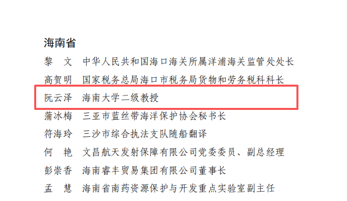 其中海南大学南繁学院(三亚南繁研究院)二级教授阮云泽荣获全国三八红旗手称号。