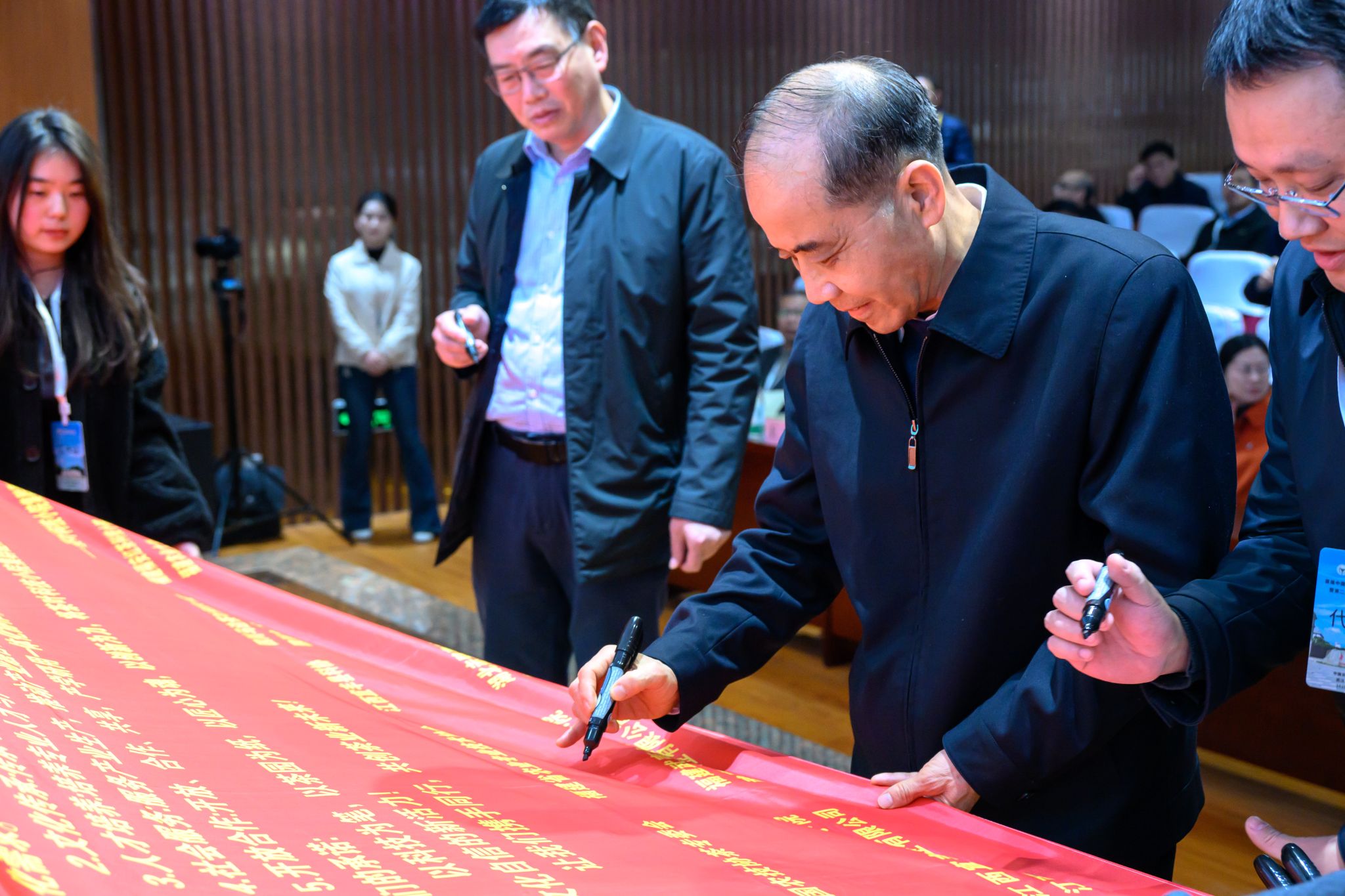 与会嘉宾在宣言上签字(学通社记者 吴彦乐 摄)