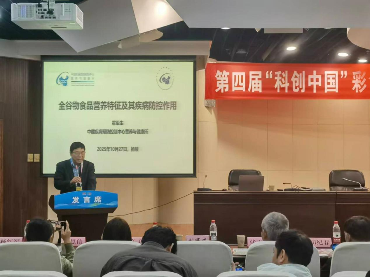 中国食品科学技术学会全谷物专业委员会副主任委员、中国疾病预防控制中心营养与健康研究所研究员霍军生作报告