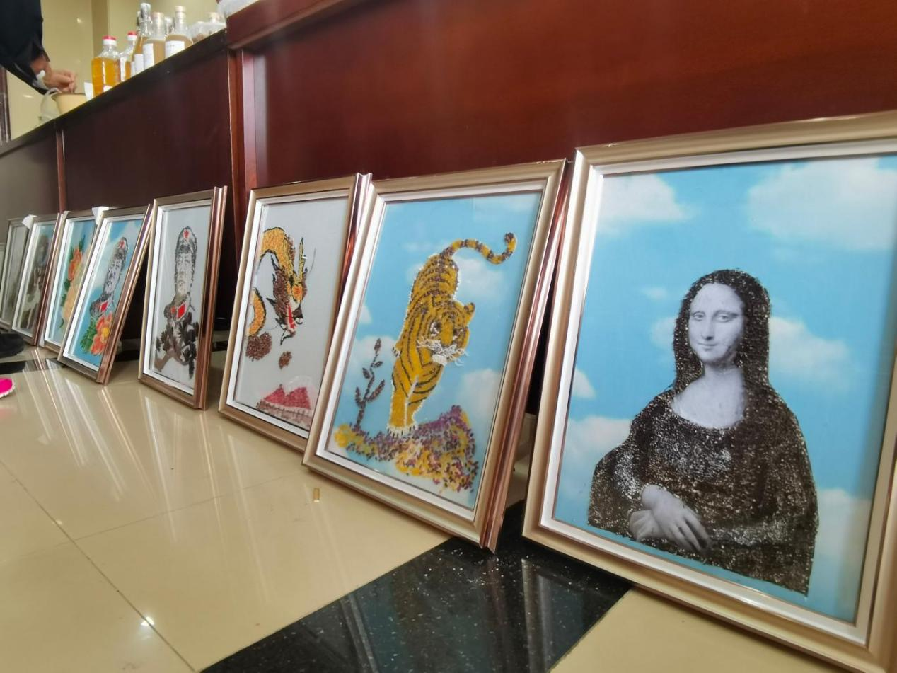 陕西泾阳民间工艺美术大师陈辉创作的“彩色小麦立体堆贴画”展